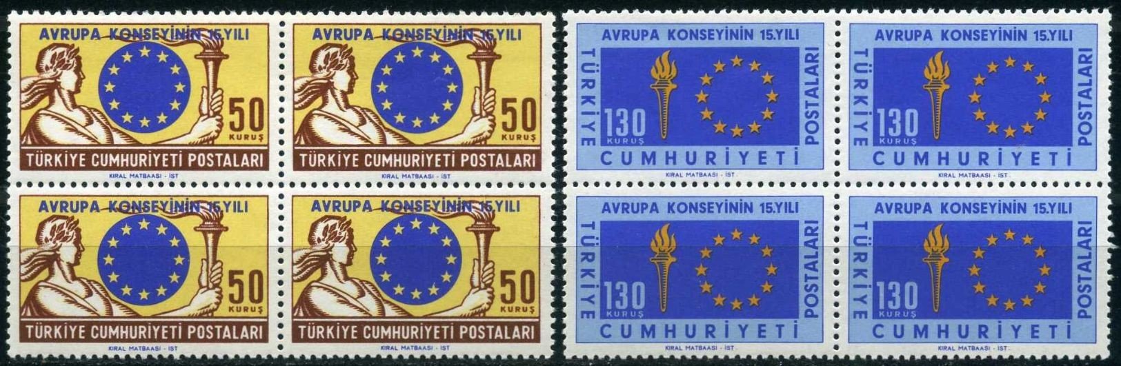 1964 DAMGASIZ AVRUPA KONSEYİ’NİN 15. YILI DÖRTLÜ BLOK SERİ