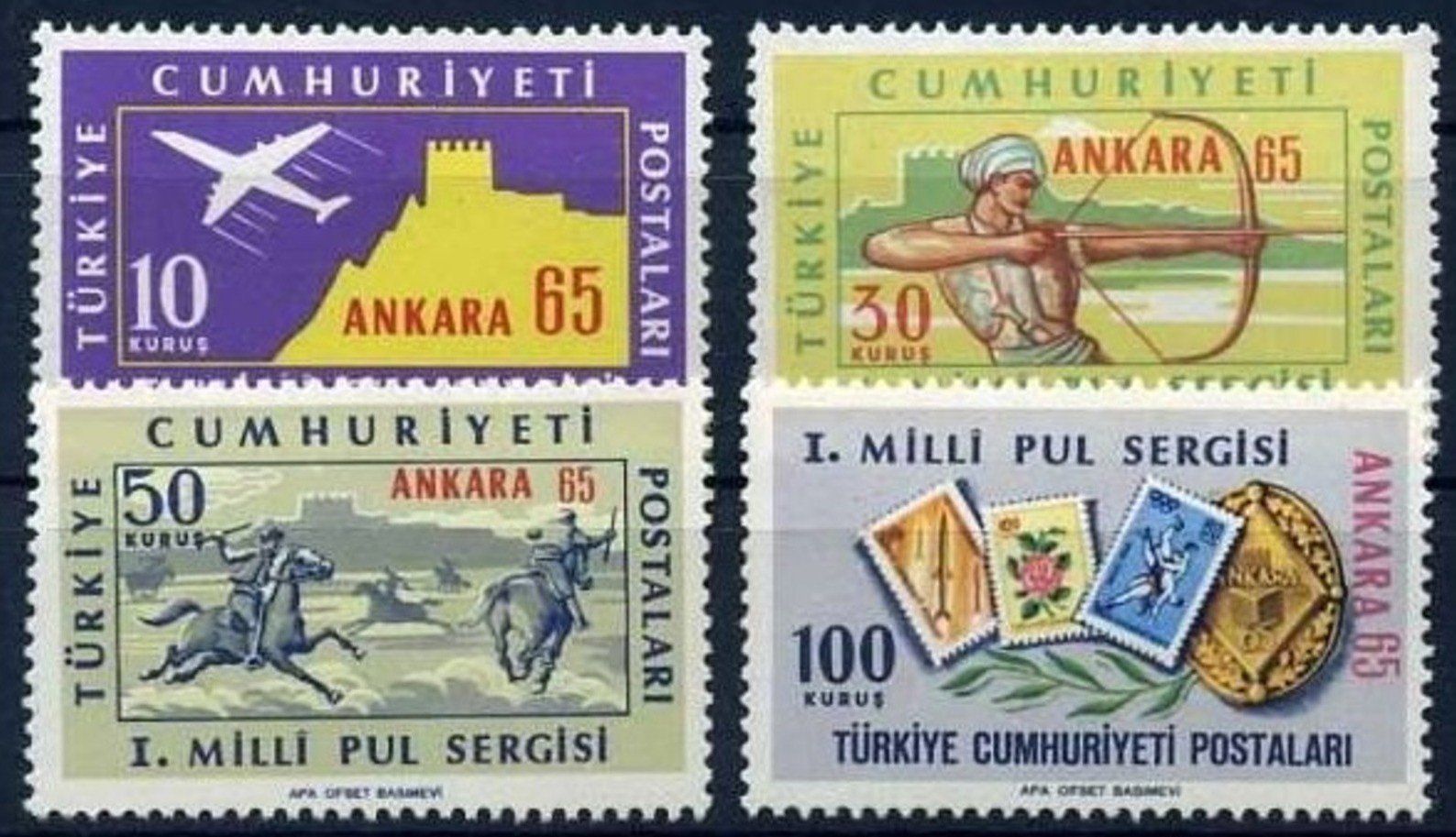 1965 DAMGASIZ ANKARA 65 1.MİLLİ PUL SERGİSİ SERİSİ