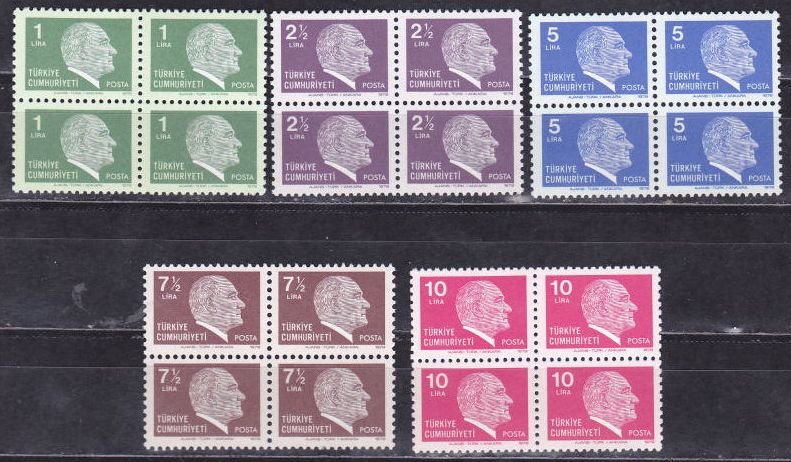 1979 DAMGASIZ SÜREKLİ ATATÜRK PULLARI DÖRTLÜ BLOK SERİ