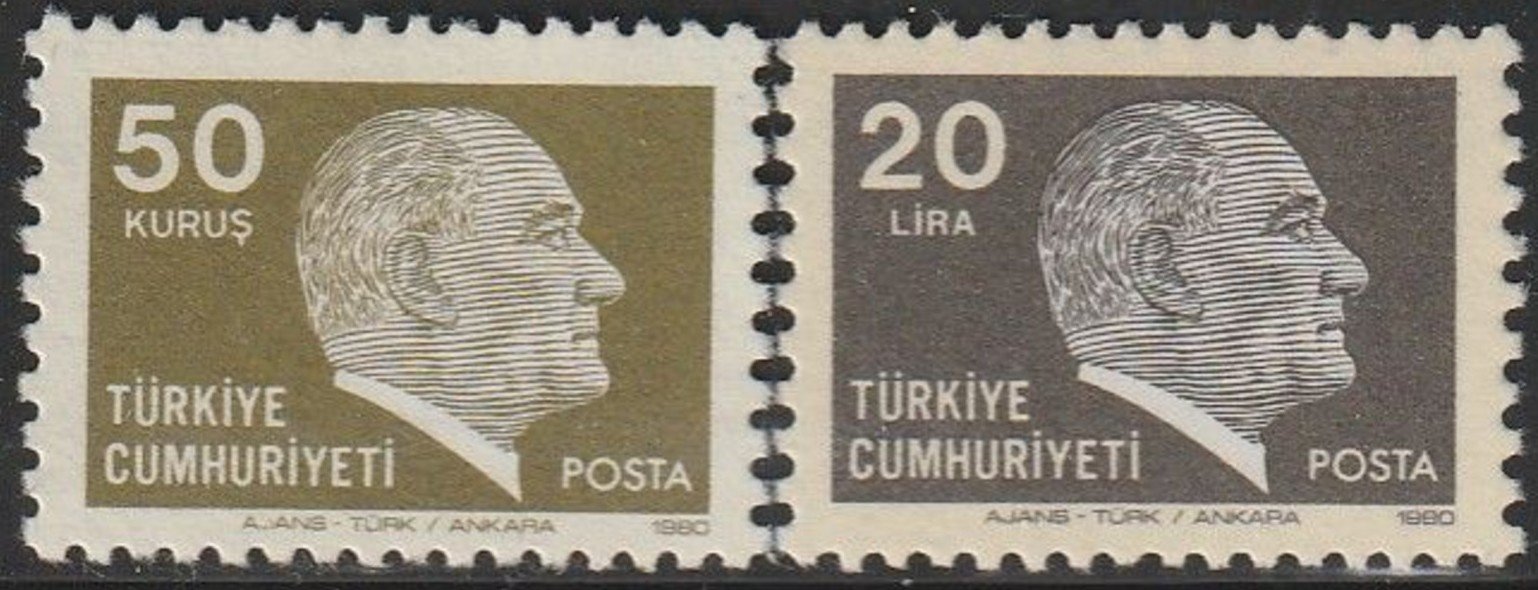 1980 DAMGASIZ SÜREKLİ ATATÜRK PULLARI (50K+20 L) SERİSİ