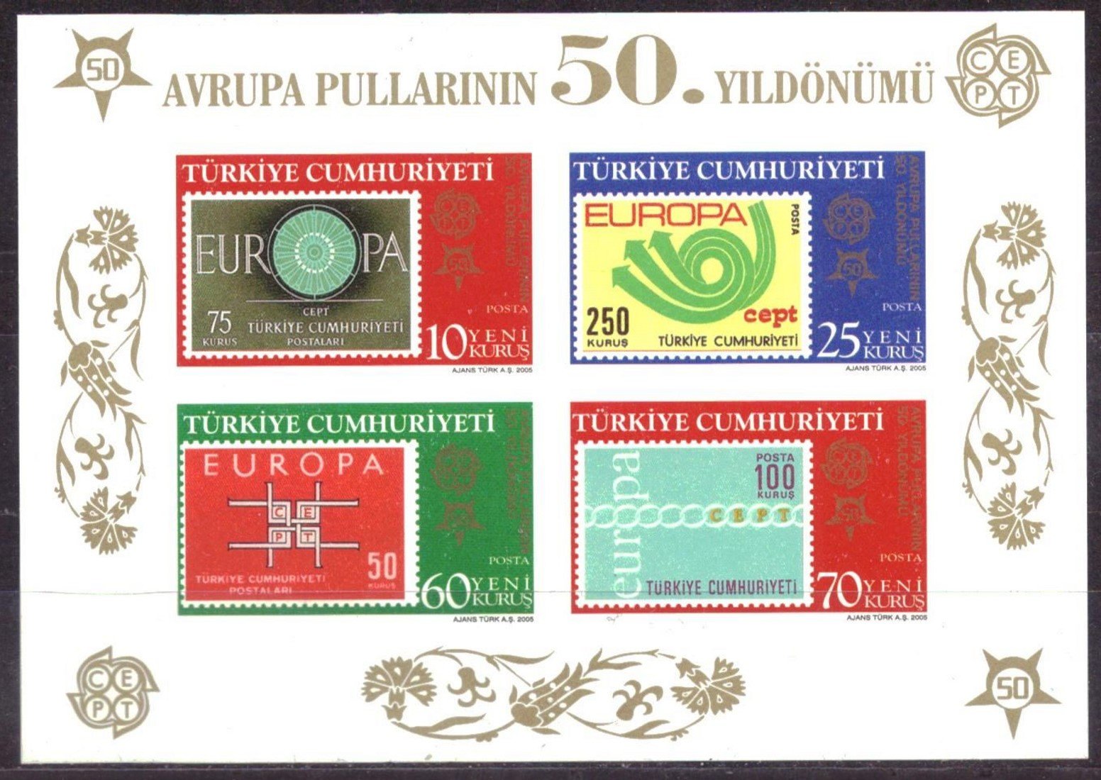 2005 DAMGASIZ DANTELSİZ AVRUPA CEPT PULUNUN 50.YILI BLOKU