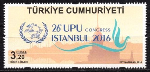 2016 DAMGASIZ 26. DÜNYA POSTA BİRLİĞİ (UPU) KONGRESİ SERİSİ