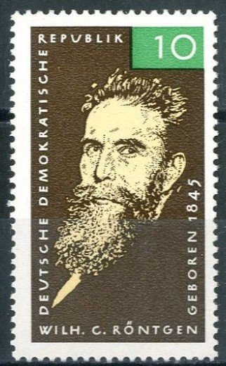 ALMANYA (DOĞU) 1965 DAMGASIZ WİLHELM RÖNTGEN'İN DOĞUMUNUN 120.YILI SERİSİ
