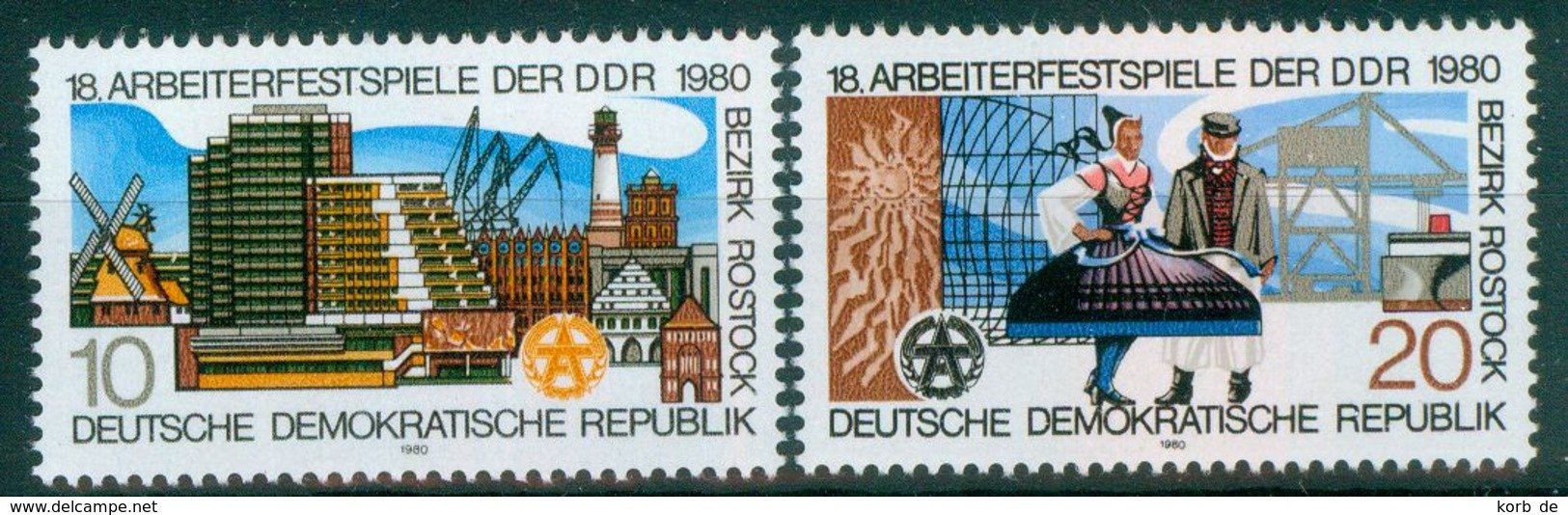 ALMANYA (DOĞU) 1980 DAMGASIZ ROSTOCK'TA 18. İŞÇİ BAYRAMI SERİSİ