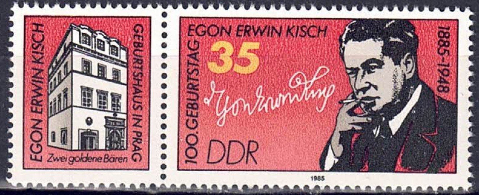ALMANYA (DOĞU) 1985 DAMGASIZ EGON ERWİN KİSCH’İN DOĞUMUNUN 100. YILI SERİSİ