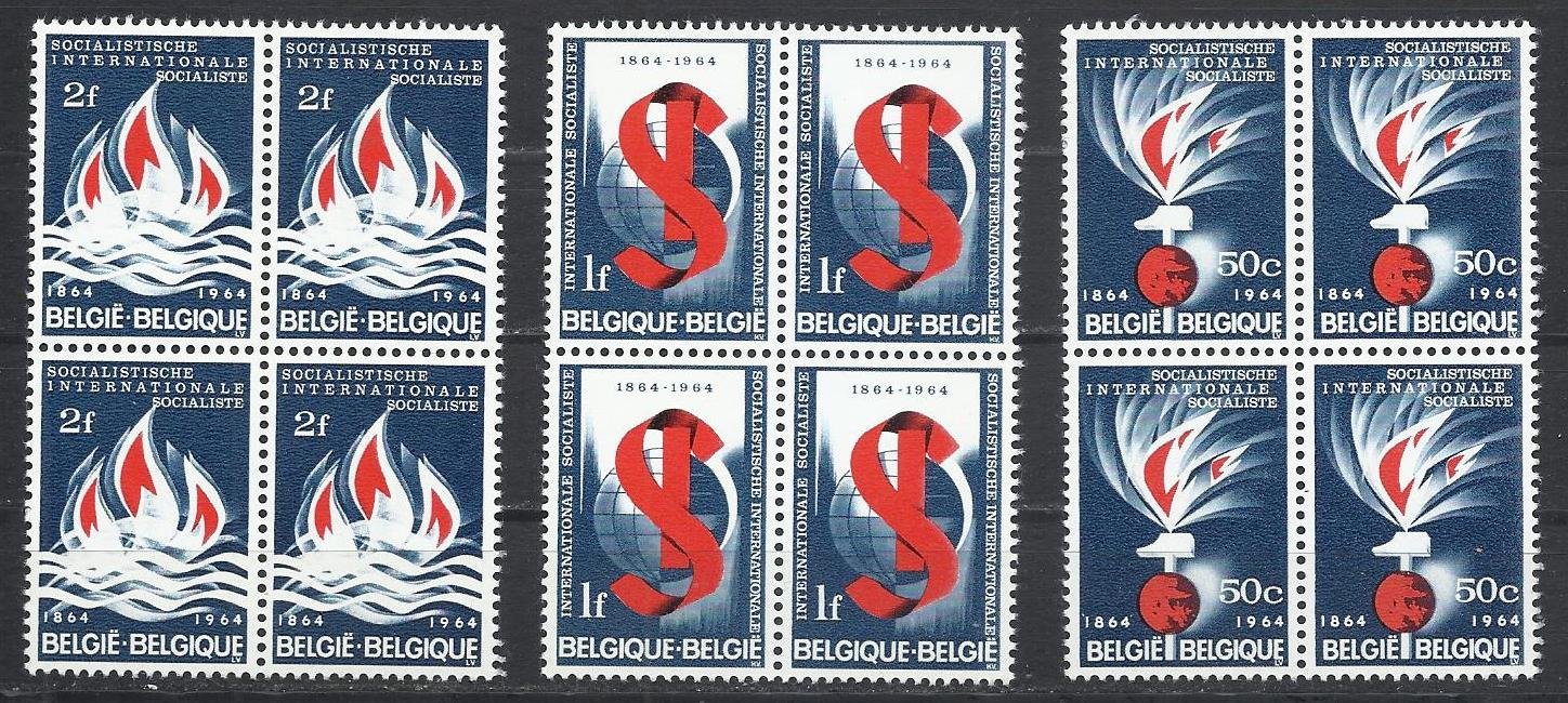 BELÇİKA 1964 DAMGASIZ ULUSLARARASI SOSYALİST BİRLİĞİ'NİN 100. YILI DÖRLÜ BLOK SERİ
