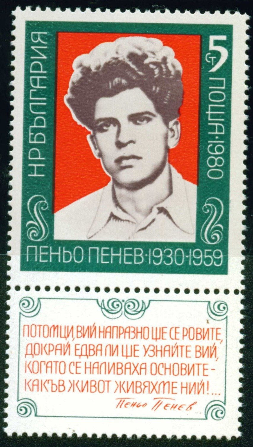 BULGARİSTAN 1980 DAMGASIZ YAZAR PENİO PENEV'İN DOĞUMUNUN 50. YILI SERİSİ