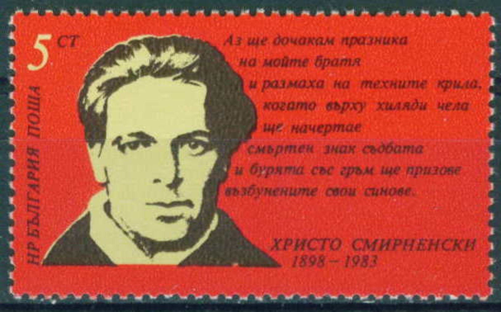 BULGARİSTAN 1983 DAMGASIZ YAZAR HRİSTO SMİRNENSKİ'NİN DOĞUMUNUN 85. YILI SERİSİ