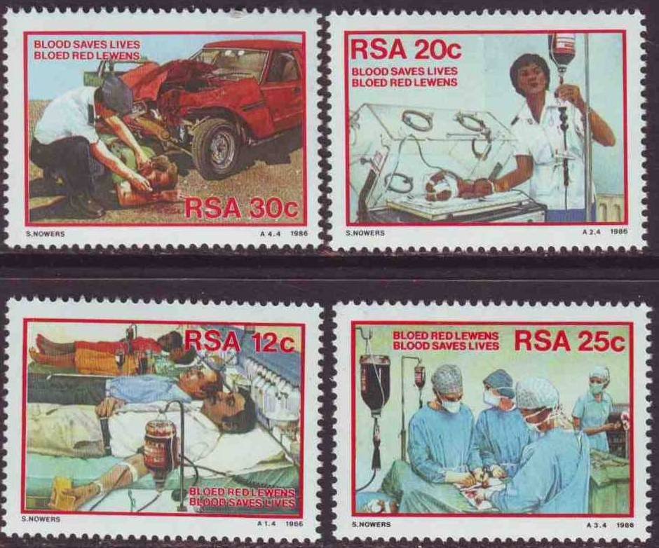 GÜNEY AFRİKA CUMHURİYETİ 1986 DAMGASIZ KAN DONÖRÜ KAMPANYASI SERİSİ