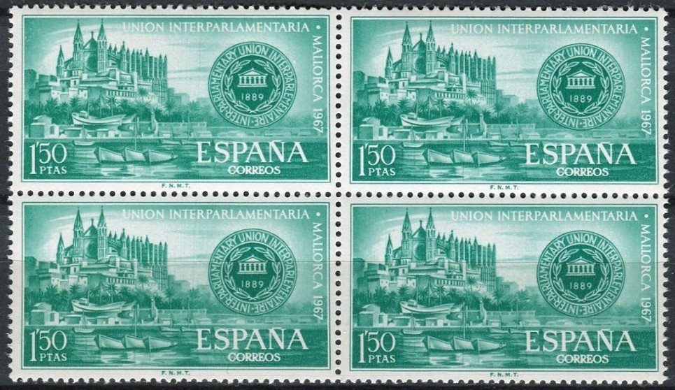 İSPANYA 1967 DAMGASIZ PARLAMENTOLAR ARASI BİRLİK TOPLANTISI DÖRTLÜ BLOK SERİ