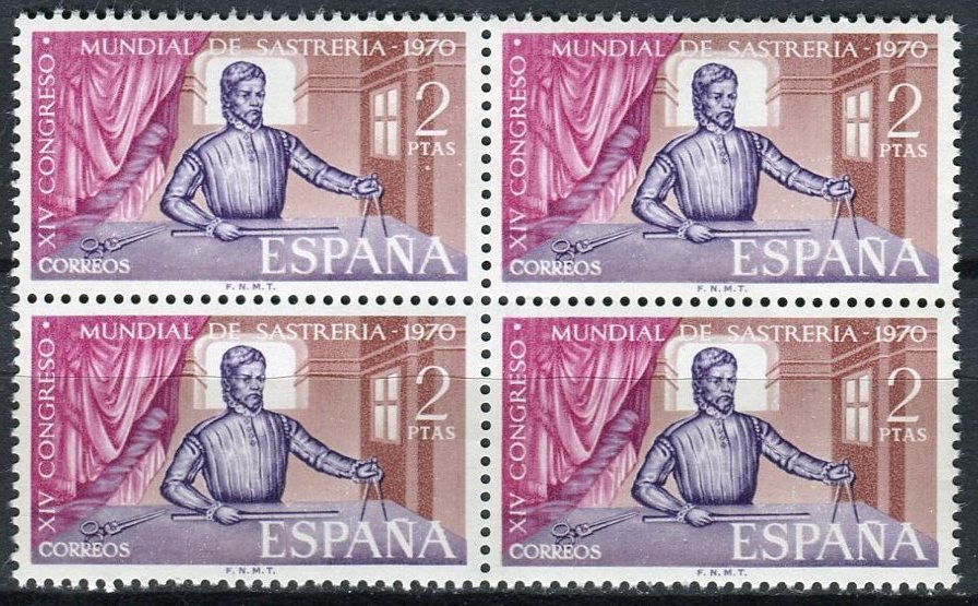İSPANYA 1970 DAMGASIZ 14. MADRİD ULUSLAR ARASI TERZİLİK KONGRESİ DÖRTLÜ BLOK SERİ