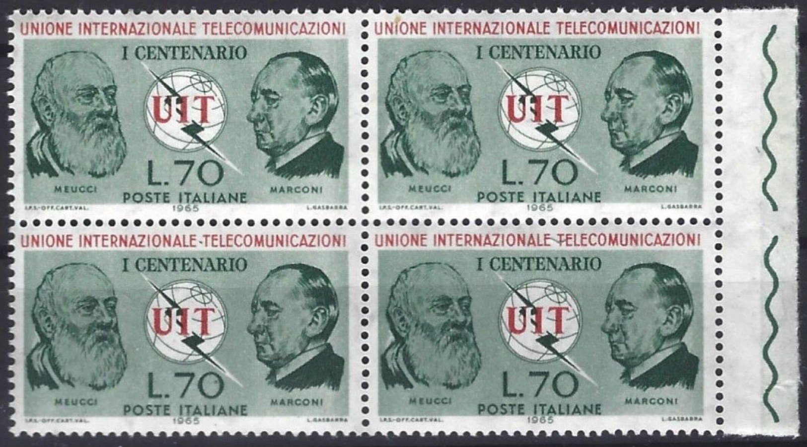 İTALYA 1965 DAMGASIZ UIT’İN 100. YILI DÖRTLÜ BLOK SERİ