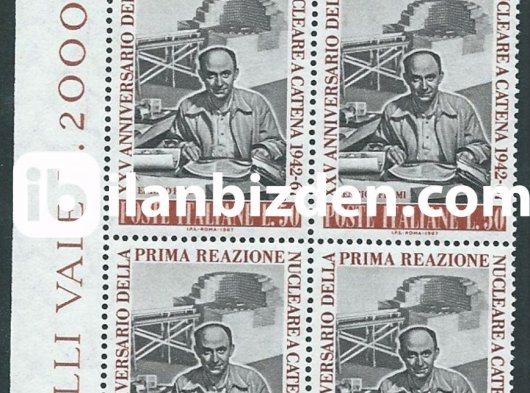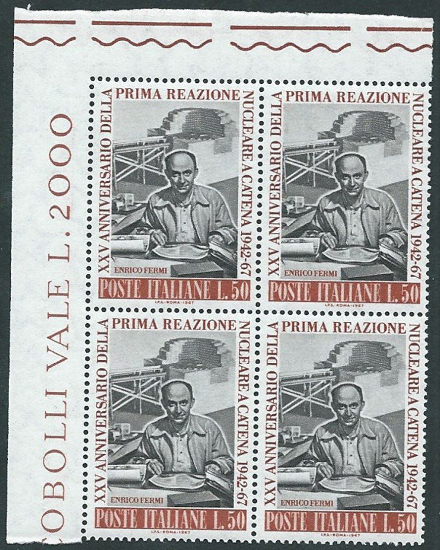 İTALYA 1967 DAMGASIZ İLK ATOMİK ZİNCİRLEME TEPKİNİN 25. YILI DÖRTLÜ BLOK SERİ