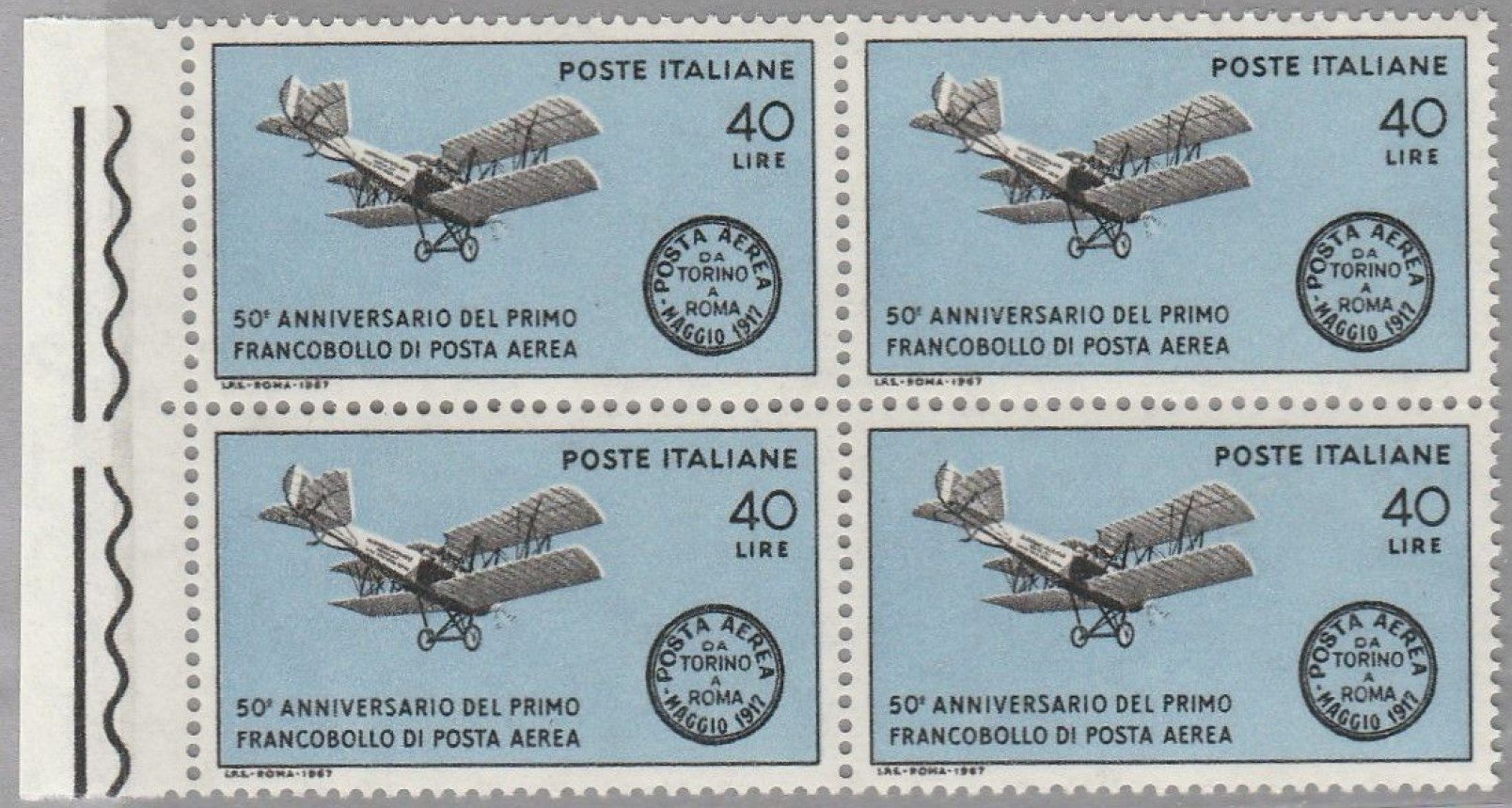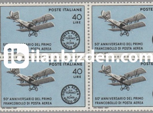 İTALYA 1967 DAMGASIZ İLK İTALYAN HAVA POSTASININ 50. YILI DÖRTLÜ BLOK SERİ