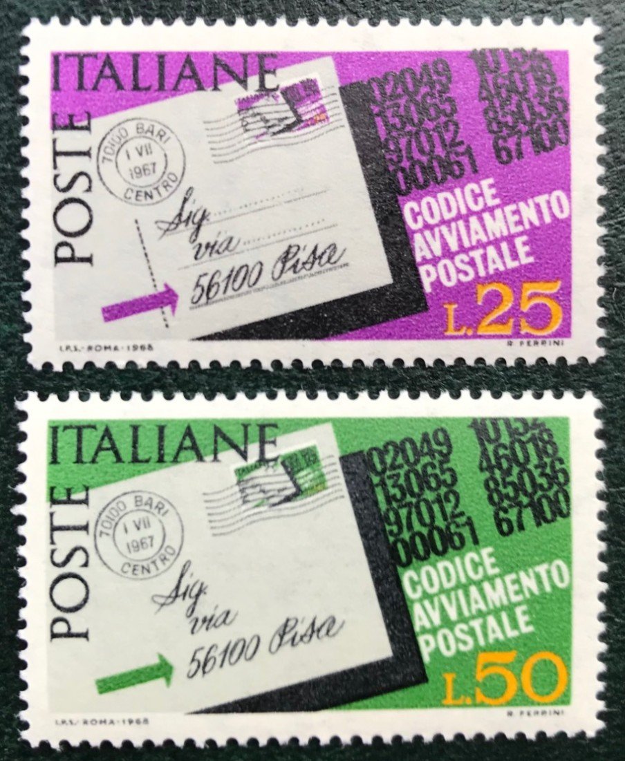 İTALYA 1968 DAMGASIZ POSTA KODLARININ TANITIMI SERİSİ