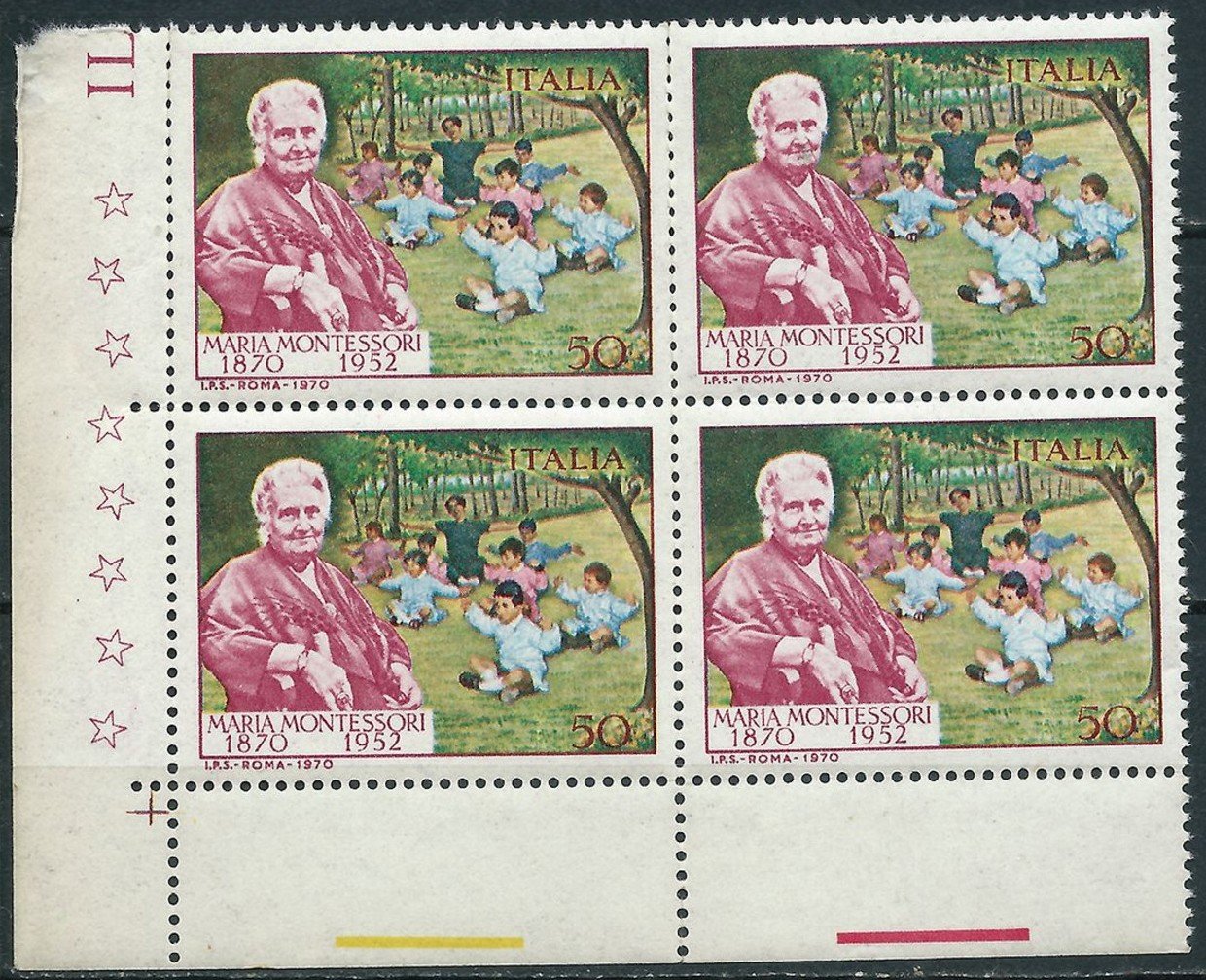 İTALYA 1970 DAMGASIZ MARİA MONTESSORİ’NİN DOĞUMUNUN 100. YILI DÖRTLÜ BLOK SERİ