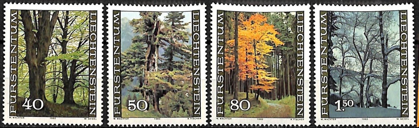 LİECHTENSTEİN 1980 DAMGASIZ DÖRT MEVSİM ORMANLARI SERİSİ