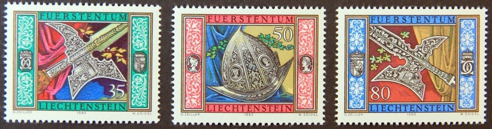 LİECHTENSTEİN 1985 DAMGASIZ KRALİYET SİLAHHANESİNDE SİLAHLARIN KORUNMASI SERİSİ