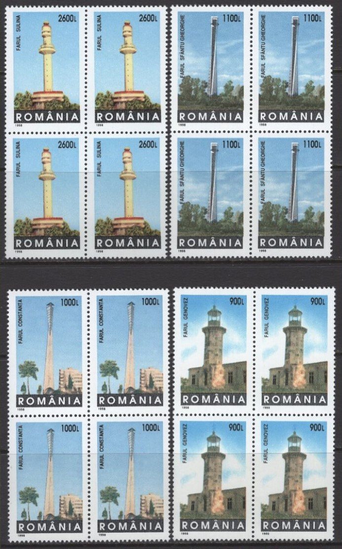 ROMANYA 1998 DAMGASIZ DENİZ FENERLERİ DÖRTLÜ BLOK SERİ