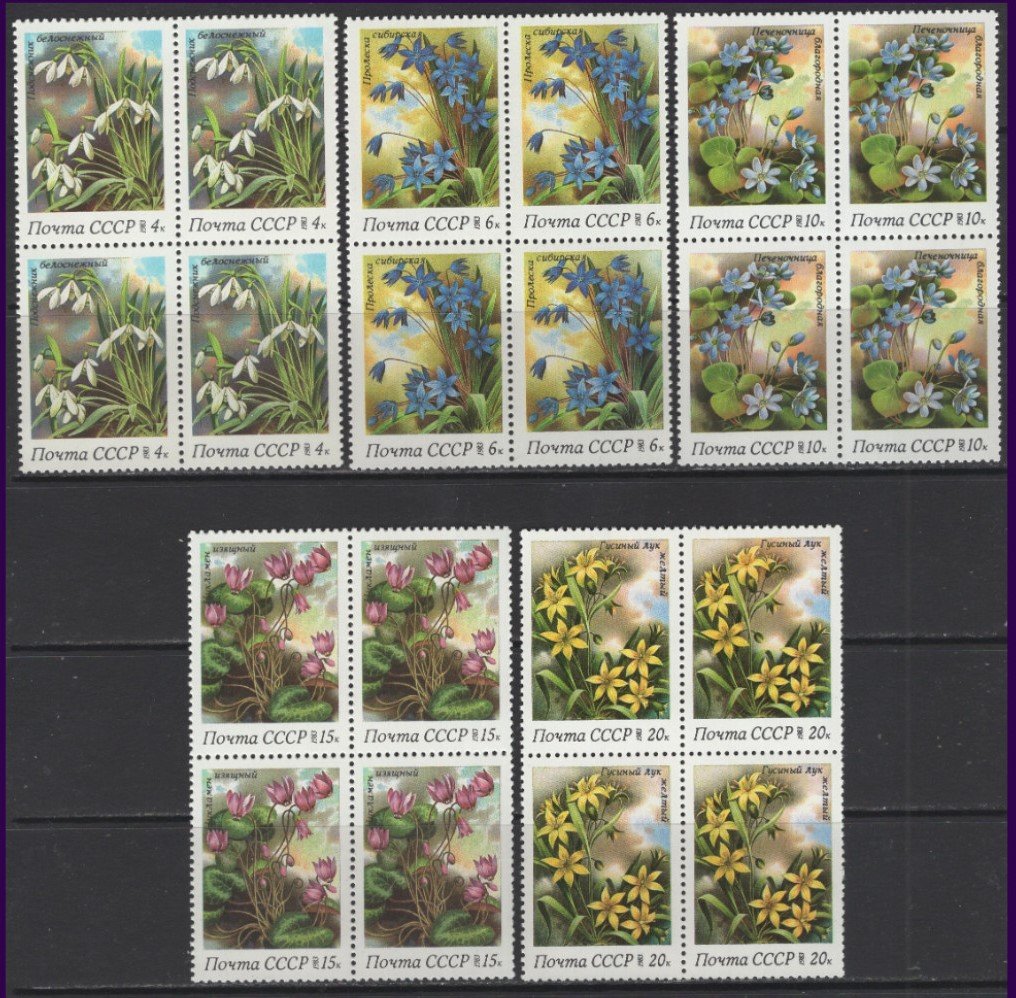 RUSYA 1983 DAMGASIZ BAHAR ÇİÇEKLERİ DÖRTLÜ BLOK SERİ
