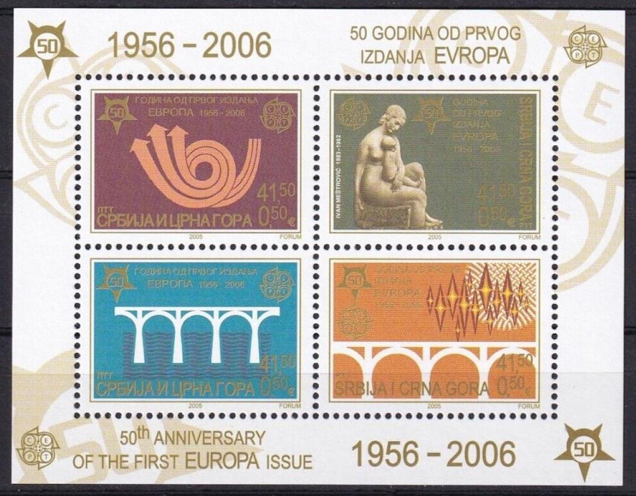SIRBİSTAN 2006 DAMGASIZ AVRUPA CEPT PULUNUN 50.YILI BLOKU II
