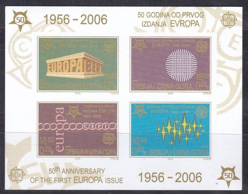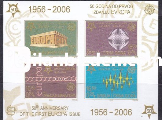 SIRBİSTAN 2006 DAMGASIZ DANTELSİZ AVRUPA CEPT PULUNUN 50.YILI BLOKU I
