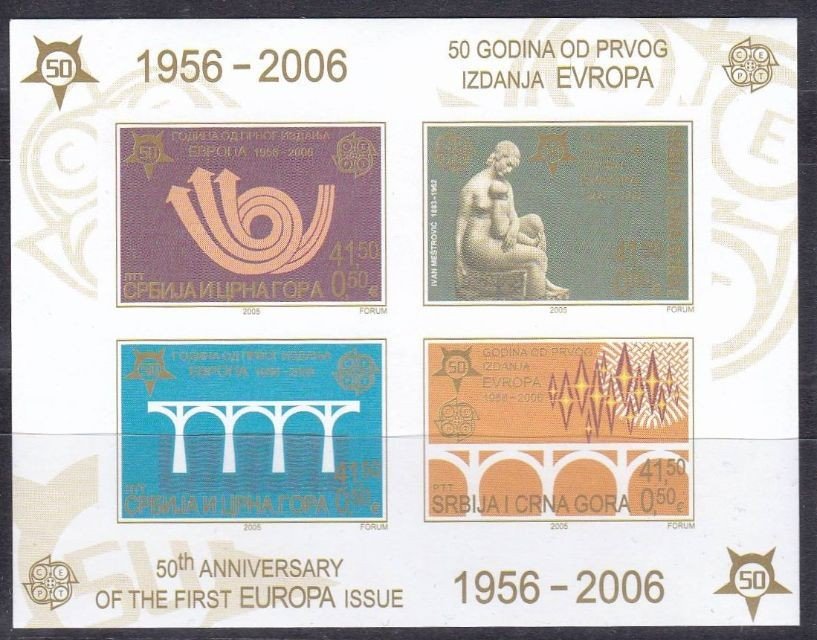 SIRBİSTAN 2006 DAMGASIZ DANTELSİZ AVRUPA CEPT PULUNUN 50.YILI BLOKU II